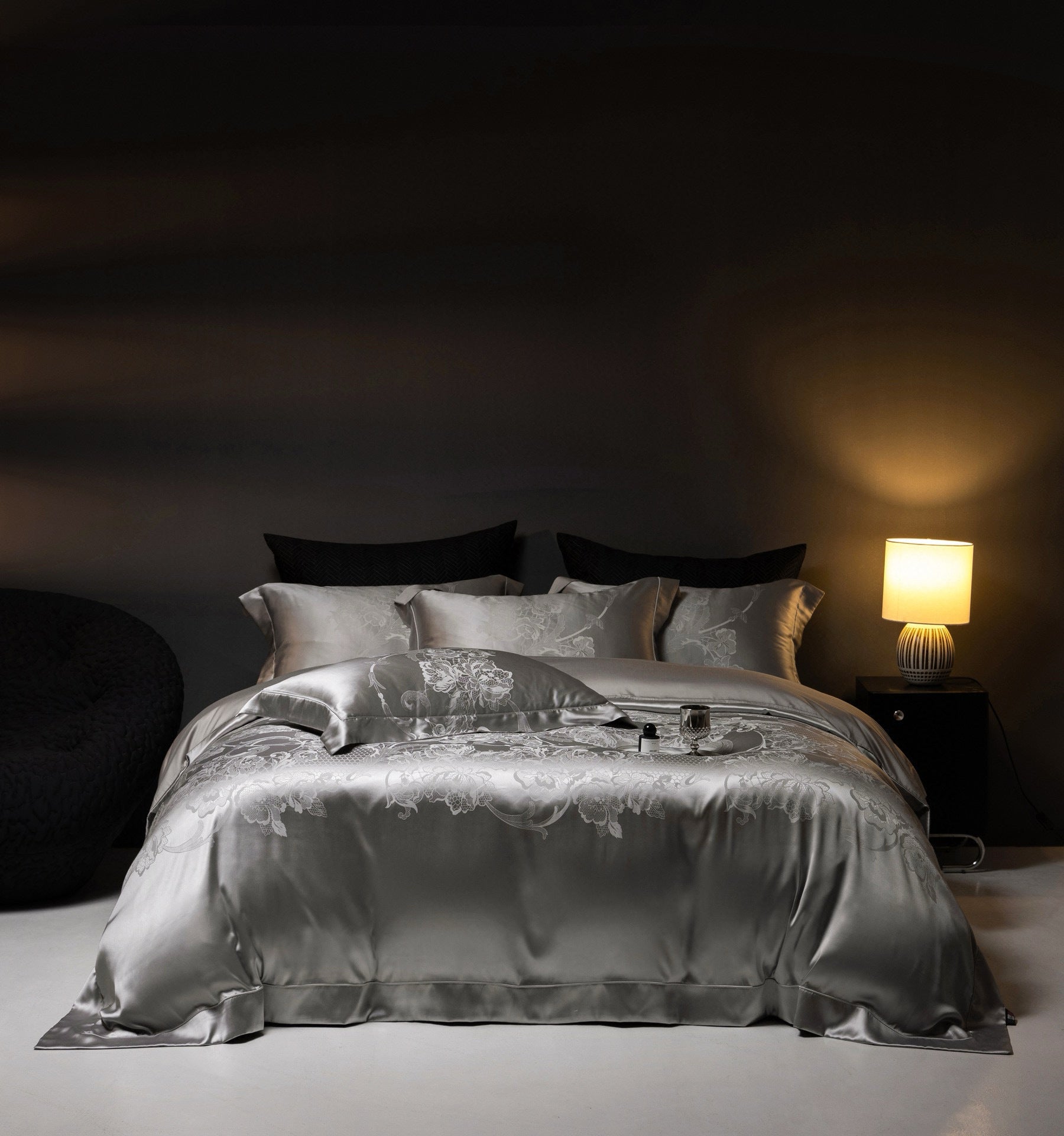 Luxury Silky Satin 4-Piece Bedding Set – Elegant Jacquard Design for Hotel-Style Comfort